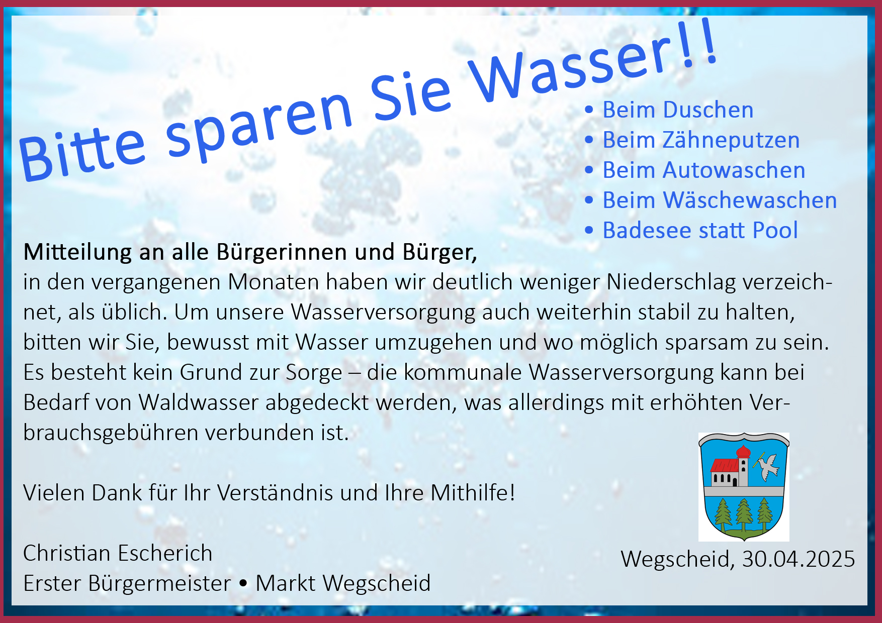 Um unsere Wasserversorgung weiterhin stabil zu halten, bitten wir Sie, bewusst mit Wasser umzugehen.