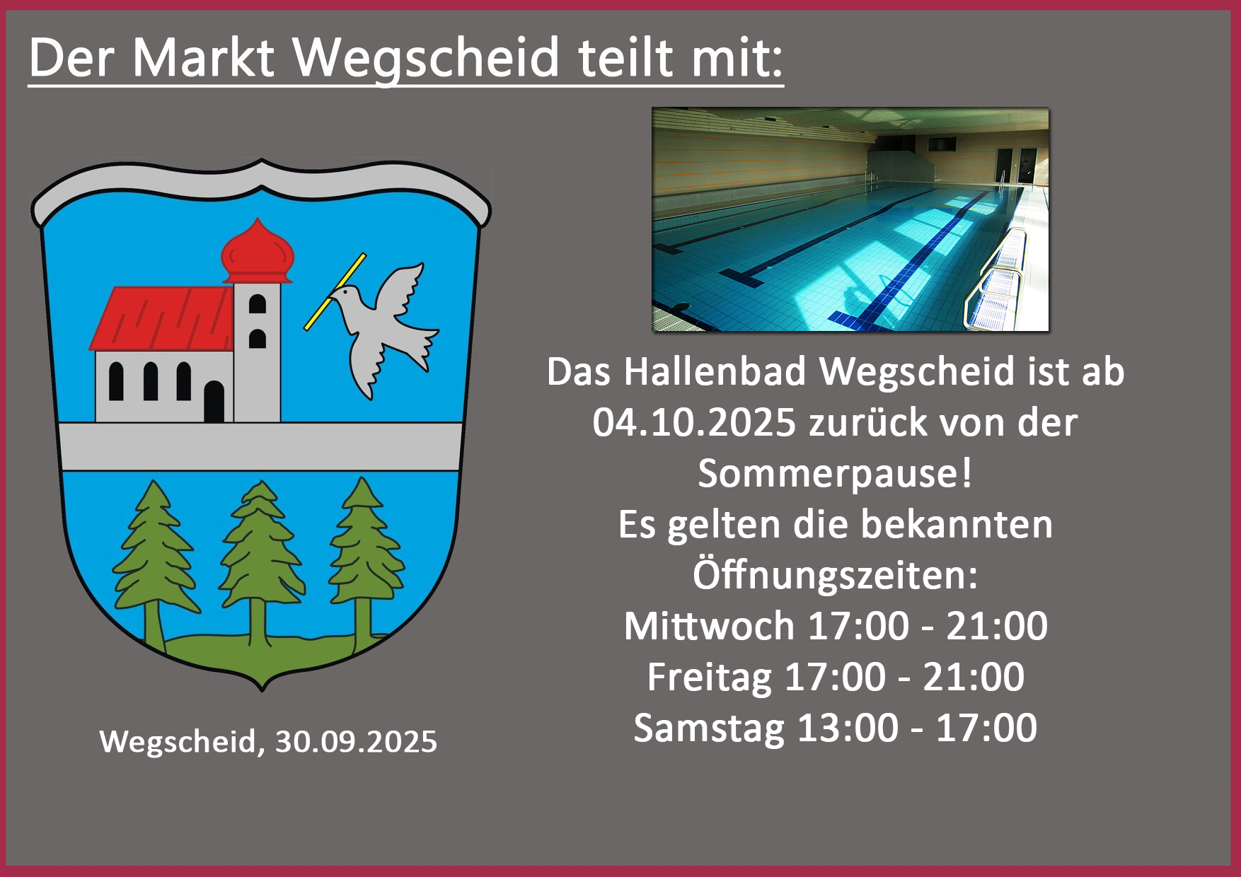 Ab Samstag, den 04.10.2025 ist unser Hallenbad wieder geöffnet.