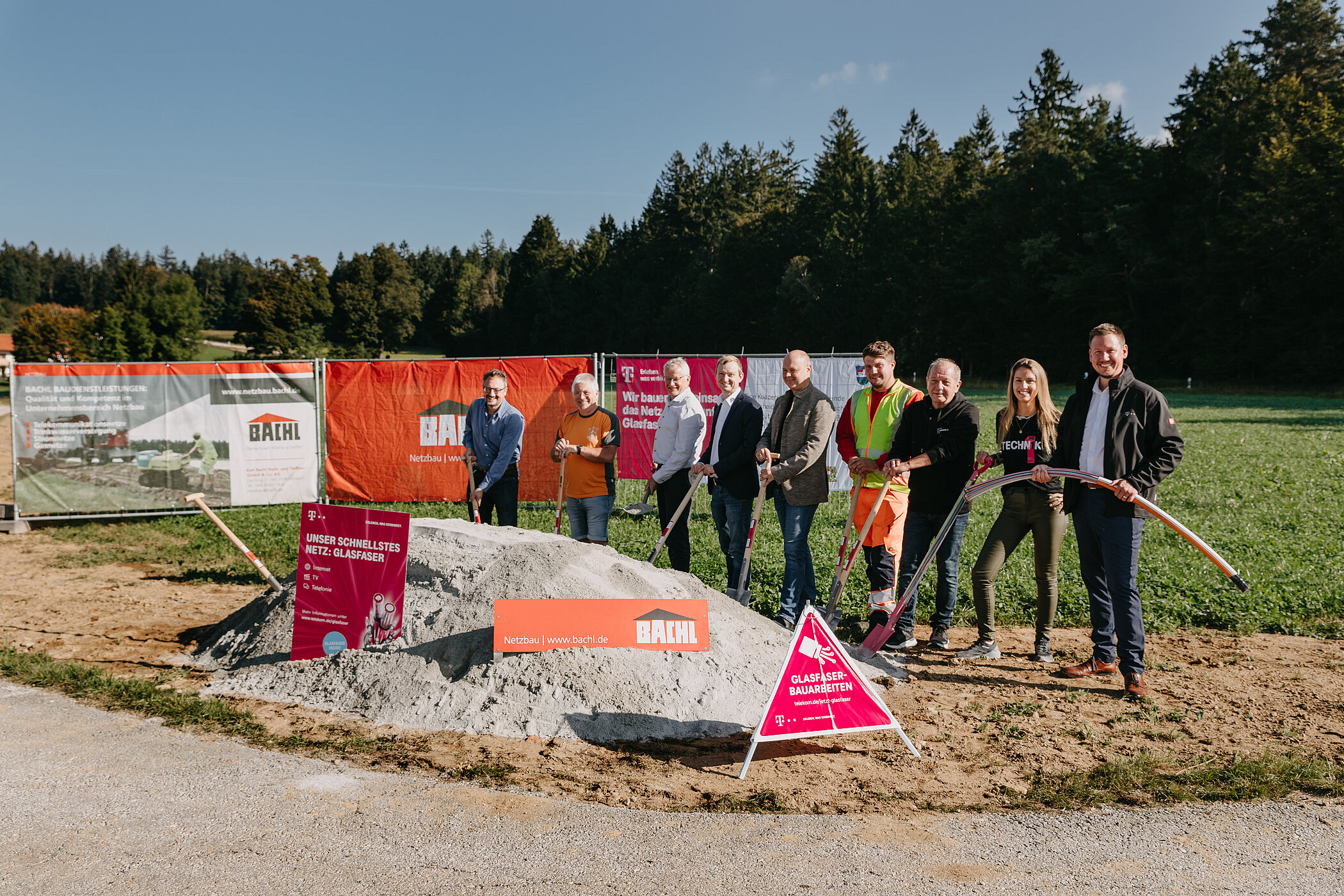 v.l. Breitbandpate Markt Wegscheid Geschäftsleiter Albert Zillner, Technischer Leiter Markt Wegscheid Reinhard Eder, Bürgermeister Markt Wegscheid Christian Escherich, Fa. Bachl Heinrich Rennert, Fa. Bachl Daniel Blöchl, Fa. Bachl Patrick Wachtfeitl, Dt. Telekom Franz Schätzl, Dt. Telekom Susanne Nebauer, Dt. Telekom Christian Lorenz