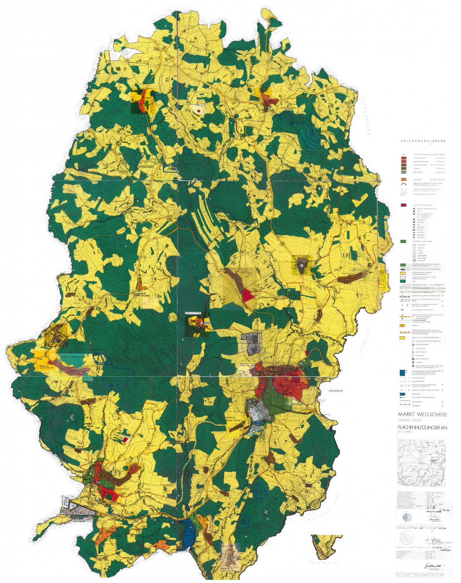 ...des Marktes Wegscheid wird für das ganze Gemeindegebiet die sich aus der beabsichtigten städtebaulichen Entwicklung ergebende Art der Bodennutzung nach den voraussehbaren Bedürfnissen der Gemeinde in den Grundzügen dargestellt. Einfach gesagt: Der Flächennutzungsplan ist ein vorbereitender Bauleitplan. Jedoch ergibt sich daraus noch kein Baurecht. Den Flächennutzungsplan finden Sie unter diesem Link (Stand Flächennutzungsplan: 1984 – 07.06.2019), allerdings nicht maßstabgetreu. Sie können diesen im Original zu den Rathaus-Öffnungszeiten im Bauamt einsehen.